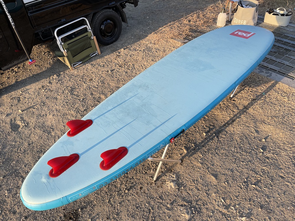 厚みは4インチで変わらず、当然RSSバテンも入るので剛性もしっかりしていています。スピードは9’8″より速くなりそうで、サーフィンにも向いていそうなスペックとフォルムです。
