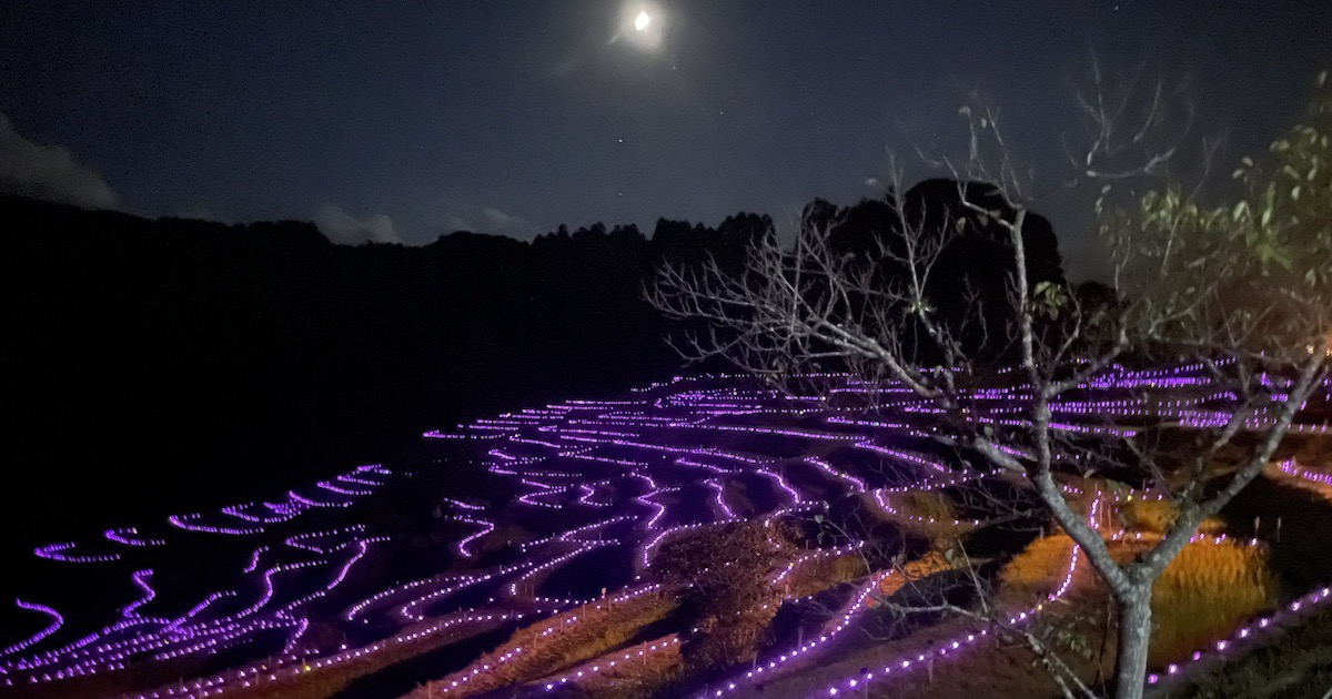 アイキャッチ画像は10月下旬から翌年1月中旬までの期間限定でライトアップが施される鴨川の大山千枚田です。今年もこれが始まりました。冬が近くなったことを感じる光景です。