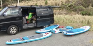 - 実際にボードやカヤックを見ていただく場所は、試乗艇を満載したVANの出向いたフィールド(海岸)です。